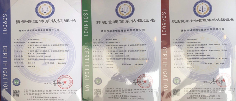 为更好适应市场竞争,进一步提升管理水平和服务质量,城建物业公司经过近半年的准备、完善和不懈努力,终于在近日成功通过国家相关认证部门审定,荣获《质量管理体系认证证书》、《环境管理体系认证证书》、《职业健康安全管理体系认证证书》和AAA级信用企业称号。